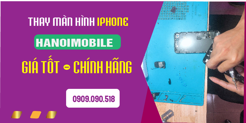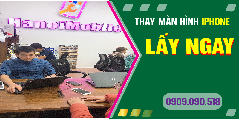 Dịch vụ thay màn hình iPhone tại chỗ, xem trực tiếp tại HanoiMobile giúp quý khách hàng yên tâm. Cam kết không đánh tráo linh kiện thay thế, thay cẩn thận. Qúy khách chỉ cần chờ 10-15 phút là chúng tôi thay màn hình xong. Cam kết màn zin, chính hãng . Hãy liên hệ ngay 0909.090.518